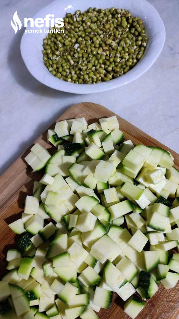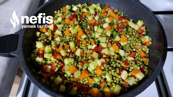 - En son kabakları da ek edin, birkaç dakika daha kavurunca maş fasulyelerini de tavaya alın.