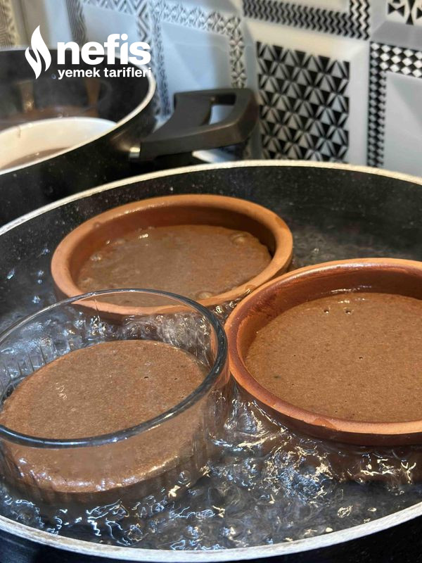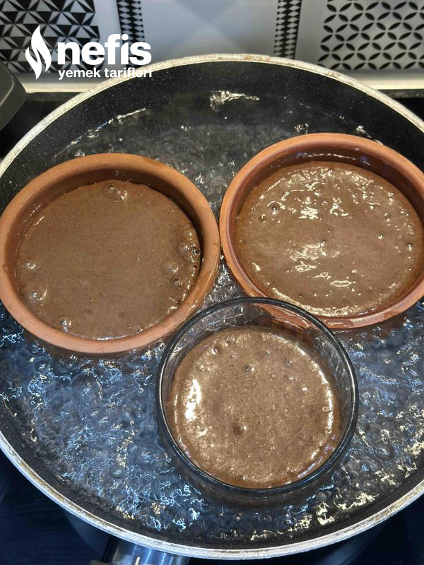 - Karışımı hazırlayıp tabaklara döküyoruz. Bir kaşık nutella, 1 er adet bitter çikolatada koyduk içlerine üstlerini tekrar karışım ile kapatıyoruz kaselerin yarısı dolacak kadar ayarlıyoruz.