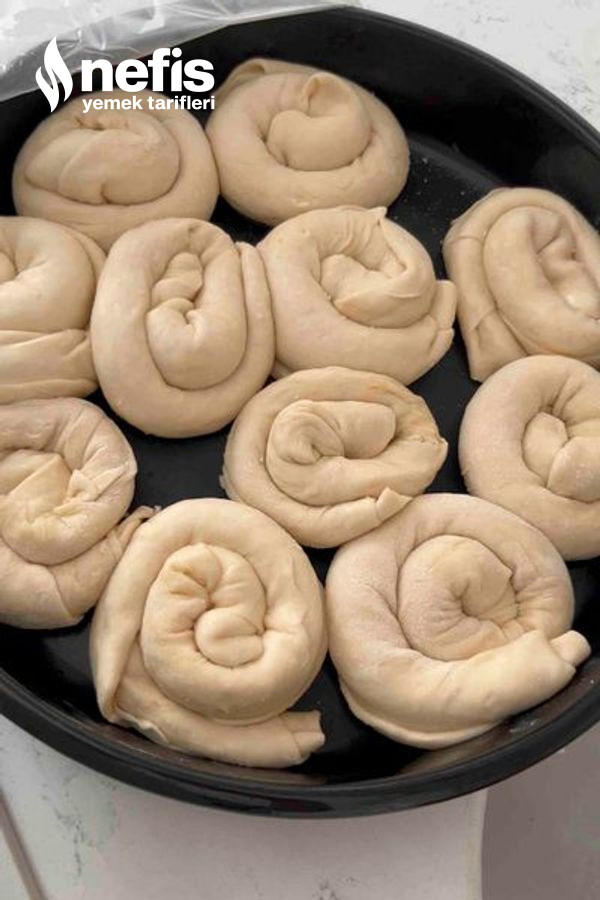 7. Bezelerimizi tek tek açıp içine yap sürelim rulo haline getirip tepsiye dizelim üstünü streçleyerek 1 saate yakın dolapta bekletelim.