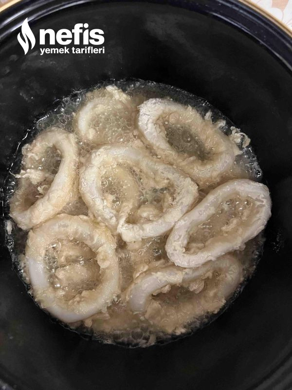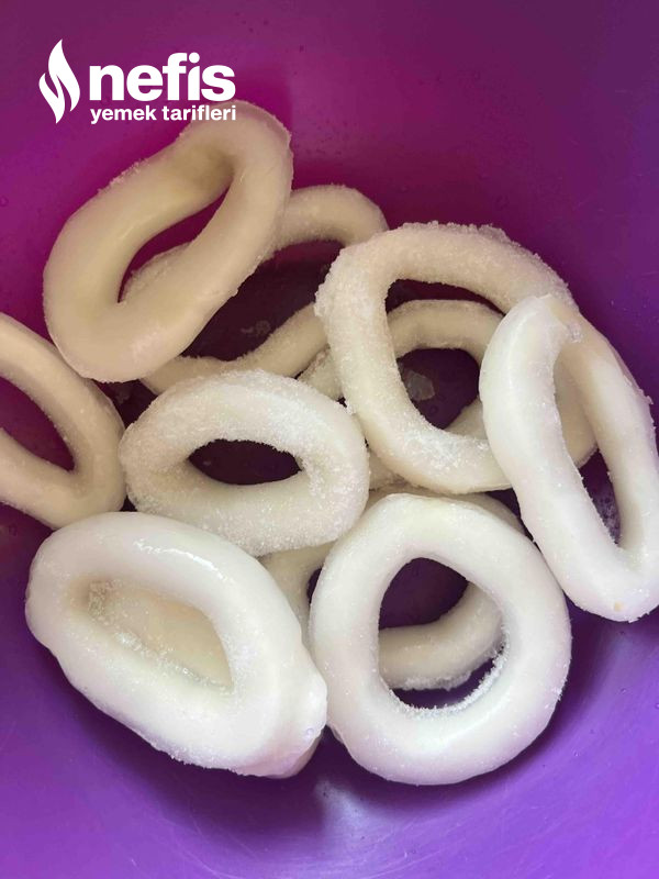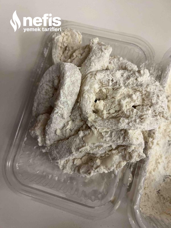5. Sonra 24 saat bekletilmiş olan kalamarları una güzelce bulayıp kızartıyoruz.