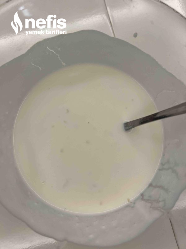 3. Sosu için sarımsak yoğurt sirke ve mayonezi 10 dk karıştırarak hazırlıyoruz.