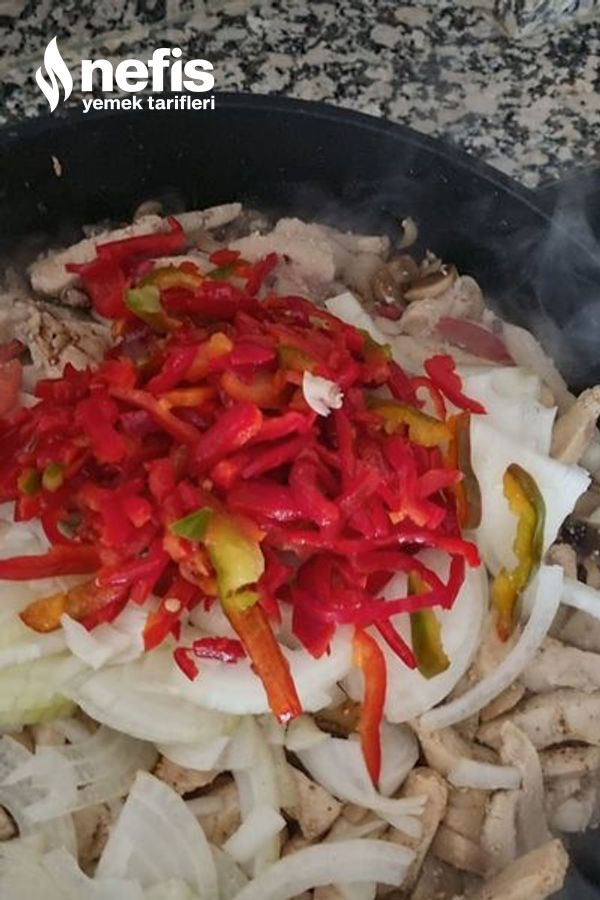- Suyunu çekene yemeğimize yağımızı ekliyoruz ,ardından soğan ve biberi ekliyoruz ve pişmeye bırakıyoruz.