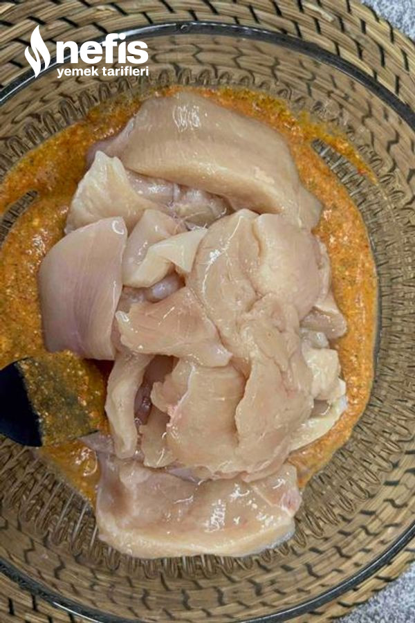 - Tavuklar üzerine eklenip karıştırılır ve 30 dk buzdolabında dinlendirilir.