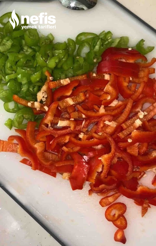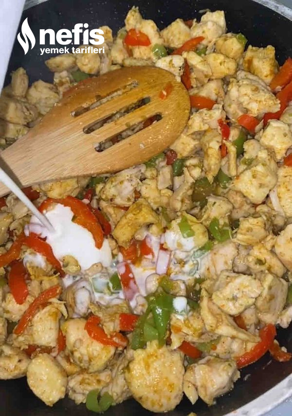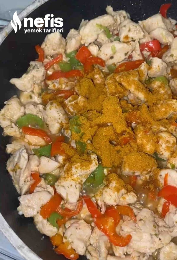 6. Ardından dilimlediğimiz biberlerimizi de tavaya ekleyelim daha sonra tuz,köri ve kremayıda ek edip karıştıralım.