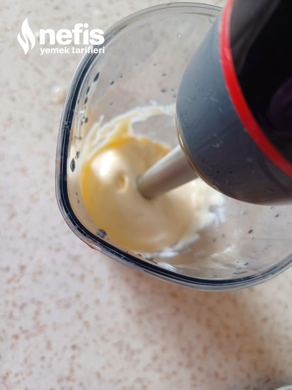 - Mayonez için tüm materyaller küçük bir kavonaza eklenir blender ile karıştırılır.