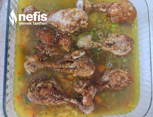 - Üzerine haşladığımız tavuk butlarını baharata bulayarak üzerine dizelim.
