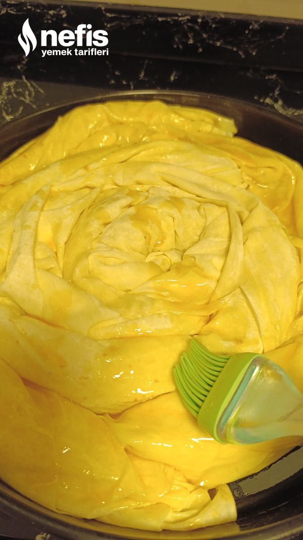3. Yufkaları tek tek olacak biçimde açıp içine sıvı yağ sürüyoruz.
