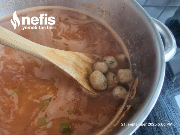 6. Kaynayan suya hazırlanan köfteler eklenir ve kapağı kapalı halde tencerede 15-20 dakika pişirilir.