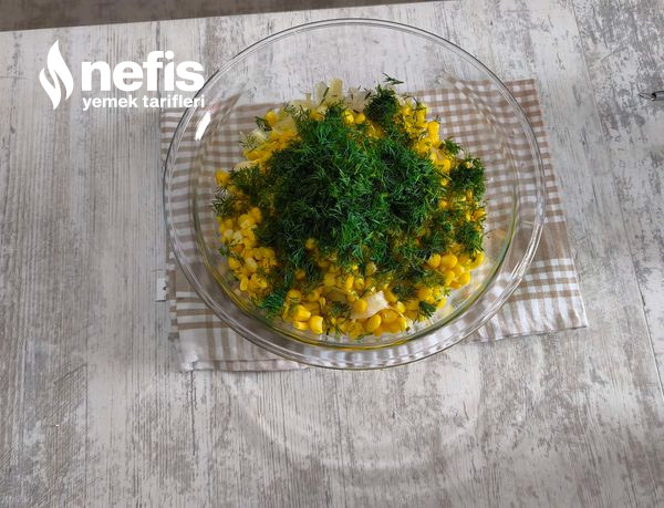 - Göbek marul ile dereotunu doğrayalım mısır ve dereotunu dan birer tutam kenara ayıralım.