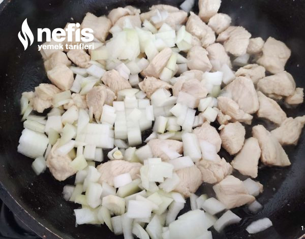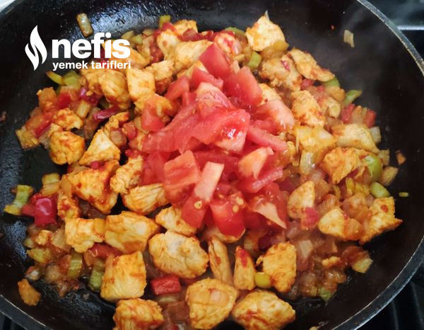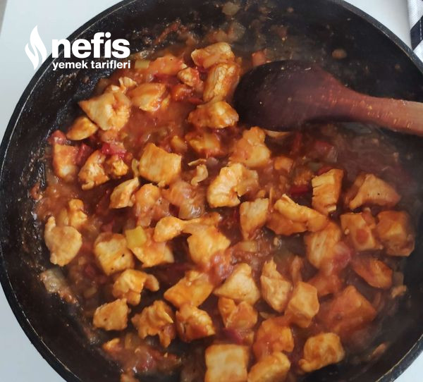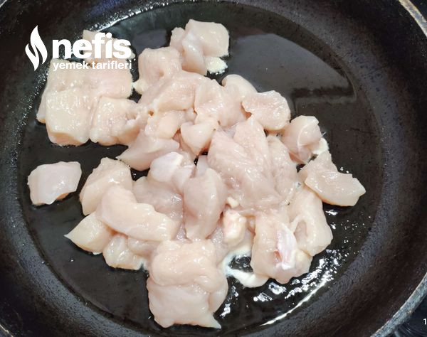 3. Kızan tavaya tavuklarımızı ek edip karıştırıyoruz.