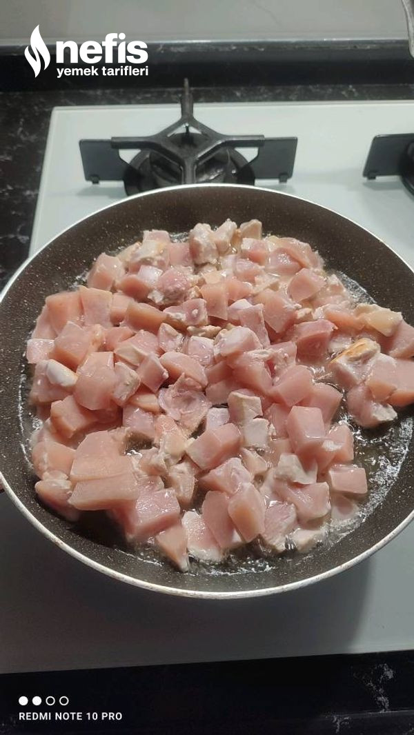 2. Tavuk göğsünü doğrayıp, yağda kavuralım.
