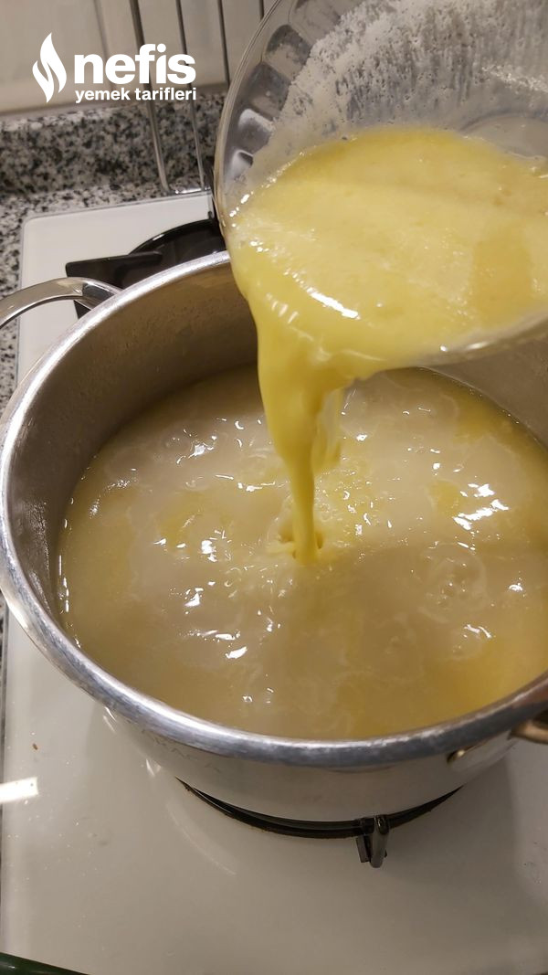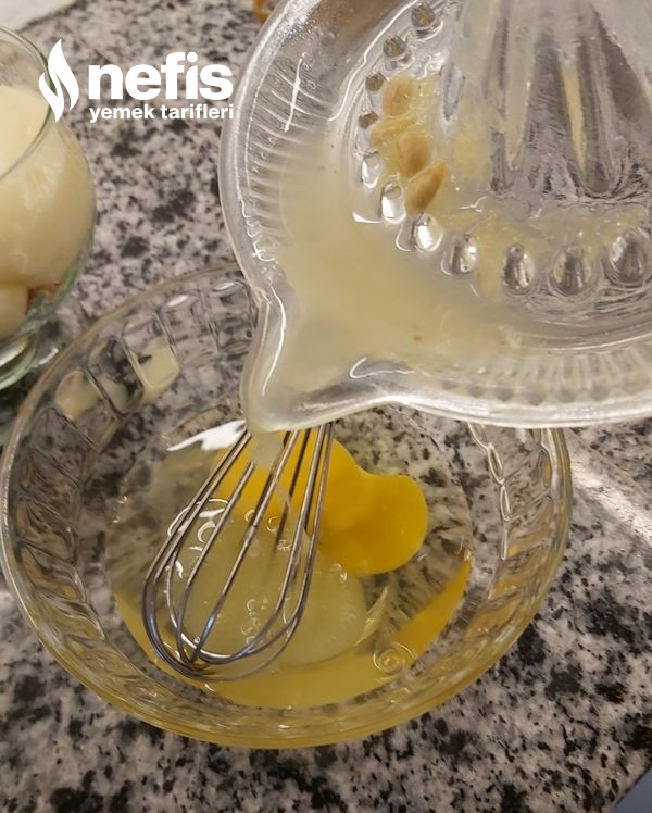 4. 1 yumurta sarısı yarım limon suyunu çırpalım kaynayan çorbadan bir kepçe bu karışıma ekleyip karıştırıp, kaynayan çorbaya yavaş yavaş ekleyelim bu ortada daima karıştıralım, yumurtalı terbiyeyi ekledikten sonrada hiç bırakmadan kaynayana kadar karıştıralım ki çorbamız kesilmesin.