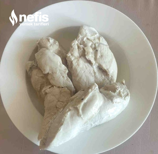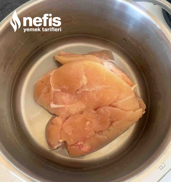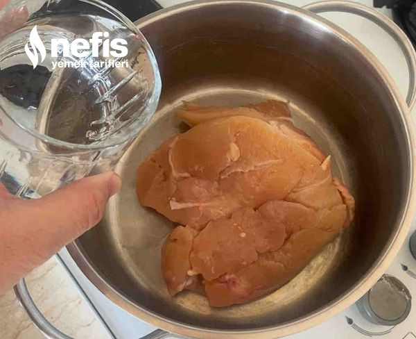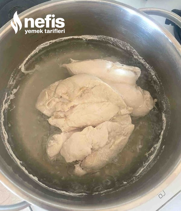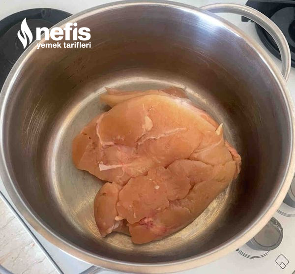2. Tavuk göğsünü yıkamadan bütün olarak 10-12 dakika kadar ön haşlayalım.