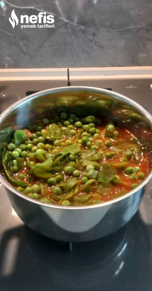 - Bir iki taşım kaynayınca bezelyeler ve göz kararı sıcak su ek edilir ve pişmeye bırakılır. Sıcak servis edilir. 👩🍳 Afiyet olsun.