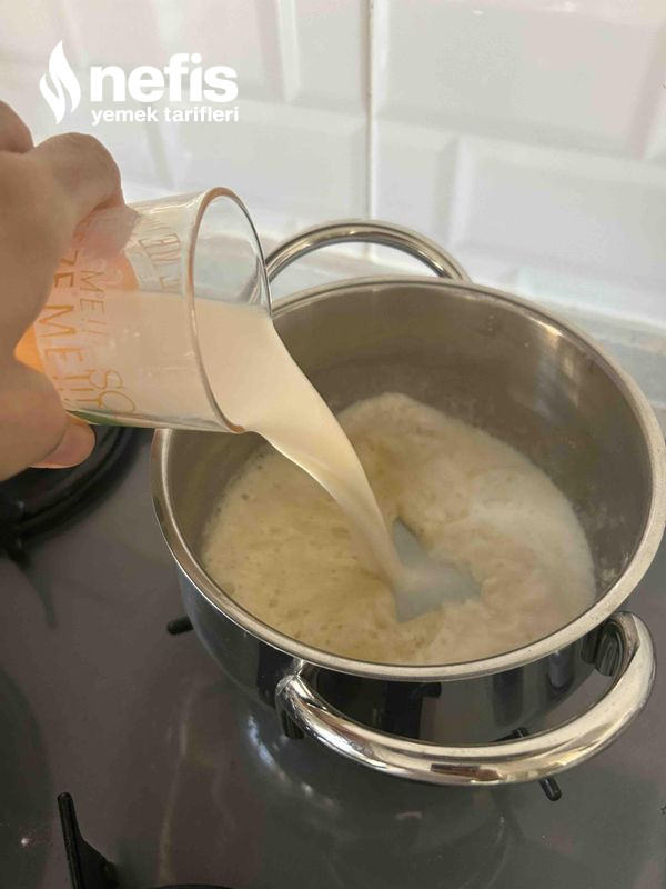 3. Beşamel sos için farklı bir tencerede tereyağını eritelim unu ek edelim 1 dk. Kavuralım üzerine sütü ek edelim daima karıştırarak pişirelim kıvam alıp kaynadıktan sonra tuz ve karabiber ekleyelim bir kenarda ılımaya bırakalım. 15-20 dk.