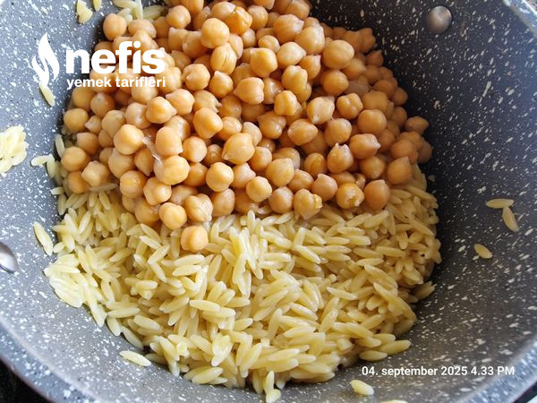 3. Arpa şehriye, kaynar su eklenerek tencerede suyunu çekene kadar pişirilir ve akabinde altı kapatılarak demlenmeye bırakılır.