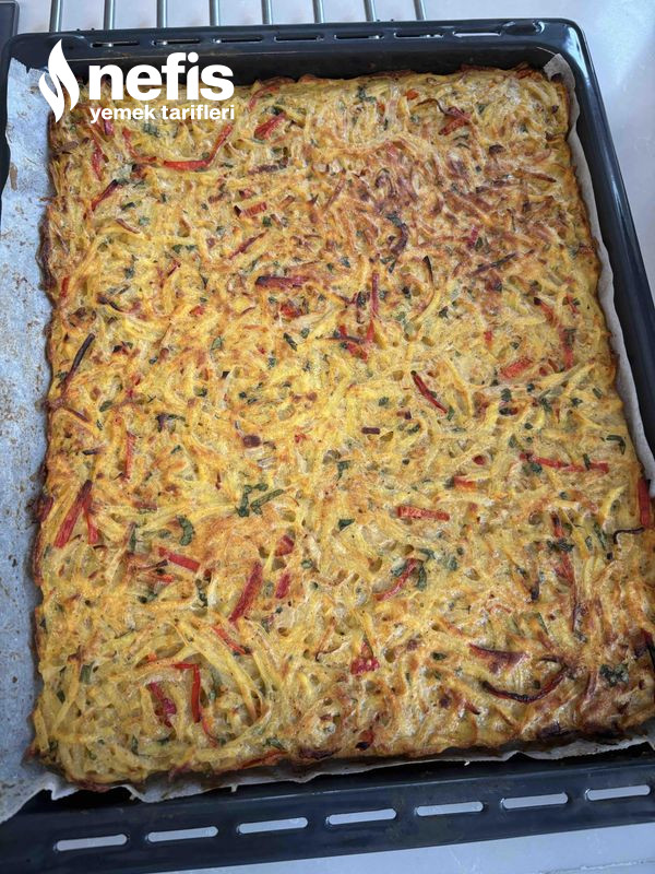 3. Yağlı kağıdın üzerine de azcık sıvı yağ sürelim her tarafına fırça ile sürelim, karışımı tepsiye aktarıp eşit halde tepsiye yayarak düzenleyelim ve evvelce ısıtışmış fırında 25 dakika kadar yahut kızarana kadar pişirip fırından çıkartalım.