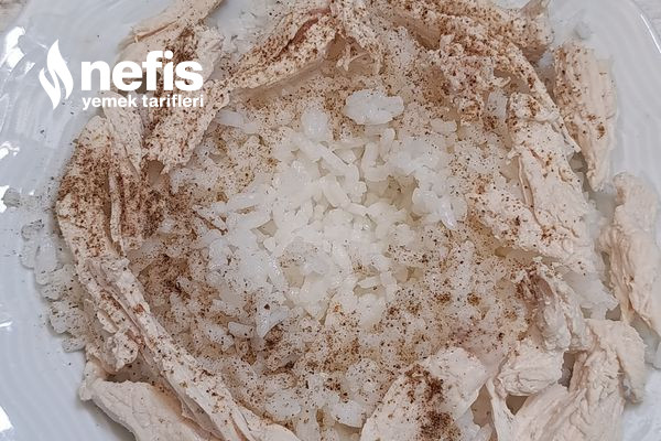 - Dinlenen pilavı tabaklara alalım. Tavuk etlerimizi tabaklara paylaşıp üzerine tadı bozmayacak azlıkta karabiber ekleyip servis edelim. Afiyet olsun.