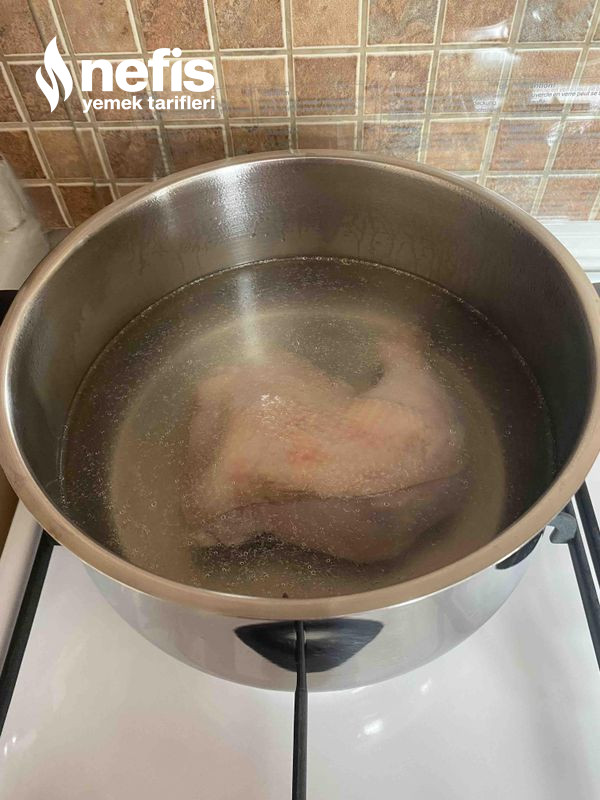 - Tavuğu yıkayıp derisiyle birlikte haşlayalım.