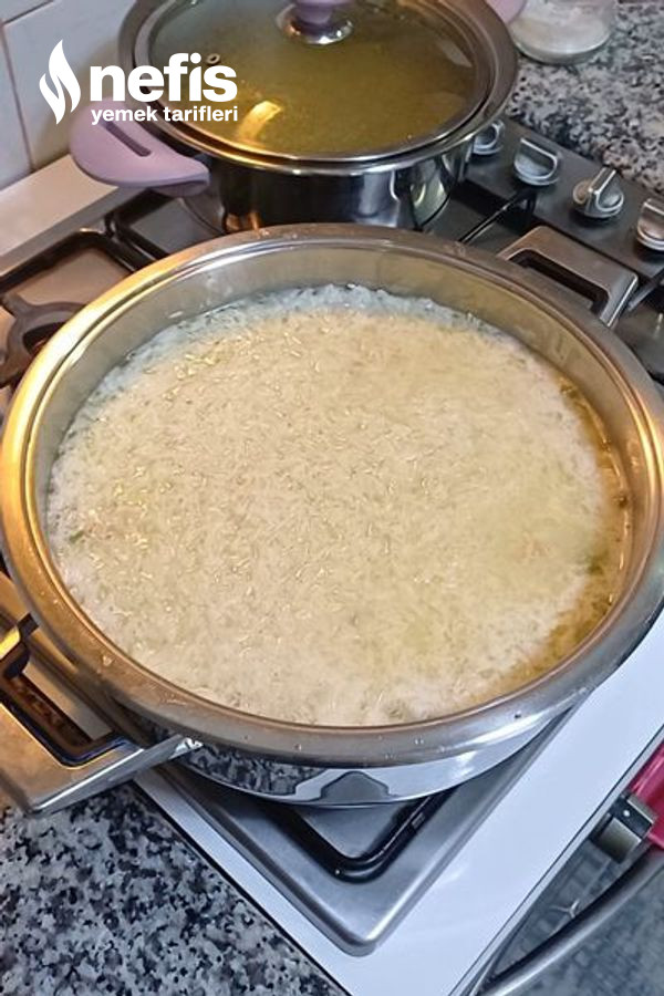 - Kaynadıktan sonra yıkayıp, süzülen pirincimizi ekleyelim kapağını kapatıp birinci yüksek ateşte pişiriyoruz. Suyunu çekmeye başlayınca kısık ateşte pişmeye bırakıyoruz.