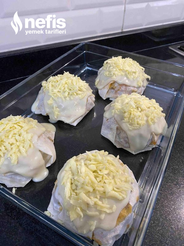 13. Tüm harcı bu formda yaptıktan sonra üzerlerine beşamel sos dökelim.