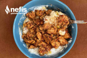 8. Hazırladığınız yoğurtlu karışımı kaseye alın. Üzerine tavukları yerleştirip servis edin.
