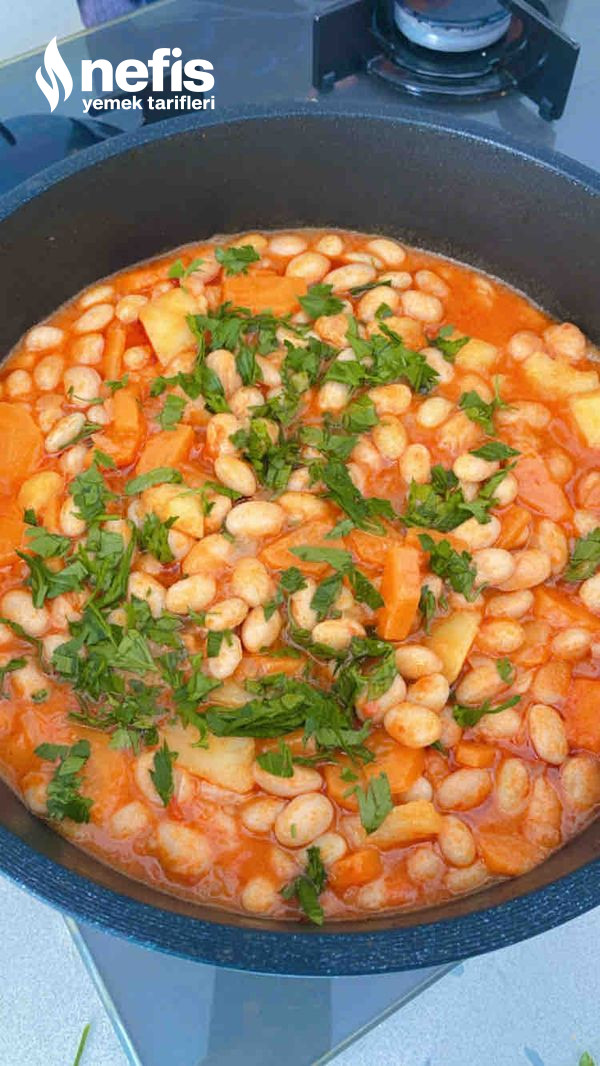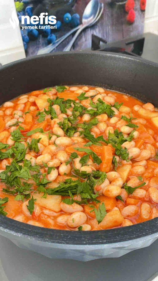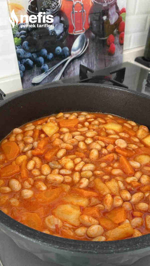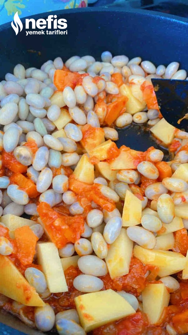 - Barbunya ve patateslerde tencereye katalım.