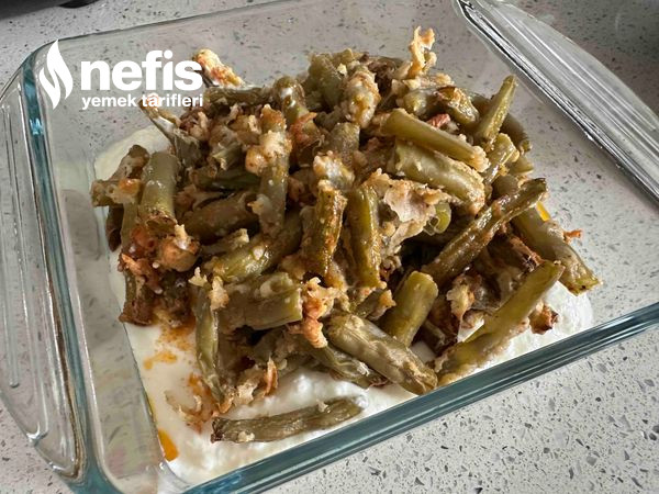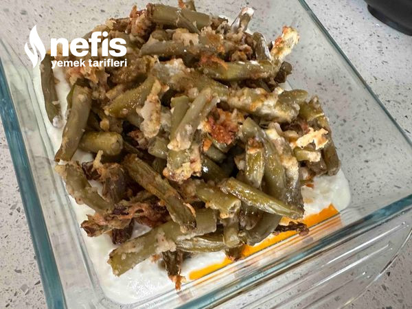 - Sarımsaklı yoğurt yapılır servis tabağının tabanına yerleştirilir.
