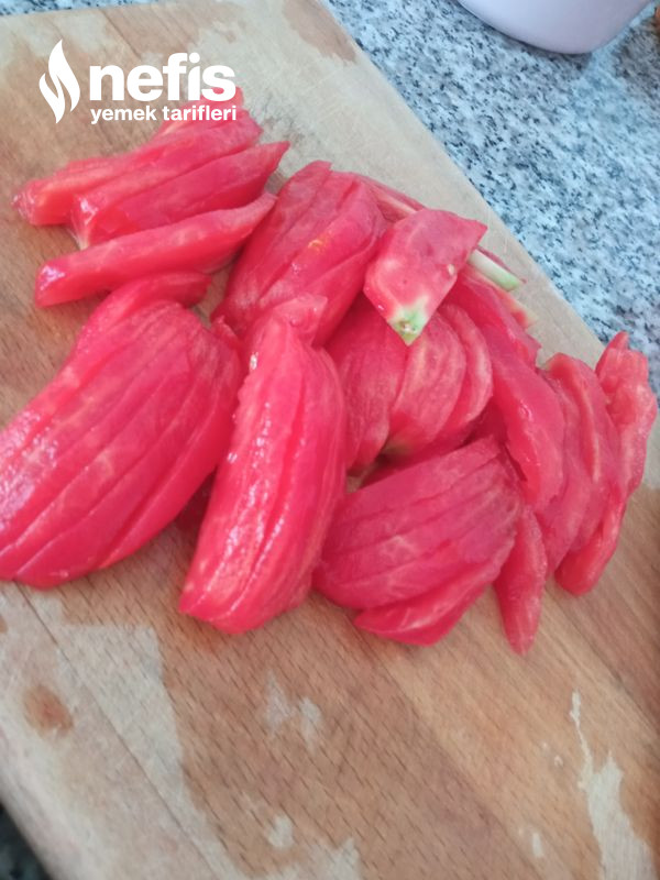 - Yaklaşık 3 dakika kadar domateslerimizi de pişirip uzun ince kestiğimiz fasulyelerimizi de üzerine ekleyelim.
