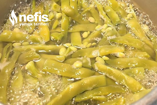 - Taze fasulyeleri yıkayıp doğruyoruz.