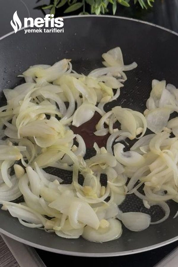 2. Ayrı bir tavada sıvı yağ ile soğanları ve sarımsağı katıp kavuralım.