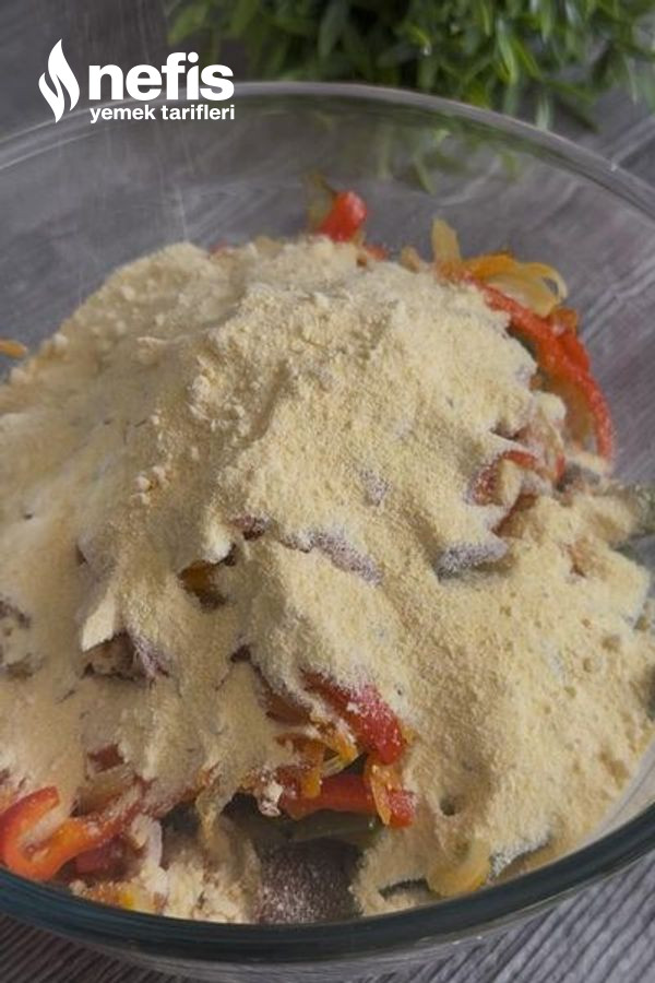 6. Üzerine yumurta mısır unu tuz ve baharatları ekleyip güzelce karıştıralım.