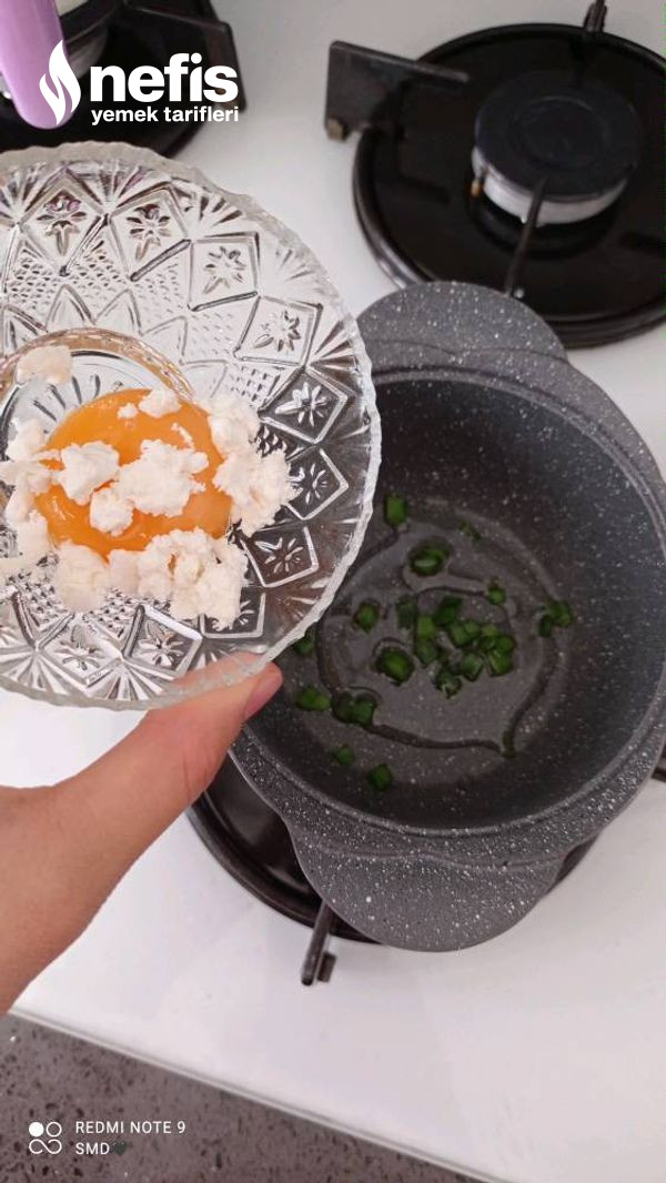 2. Soğanlar biraz ölünce yumurta sarısı ve peynirleri ekliyoruz.