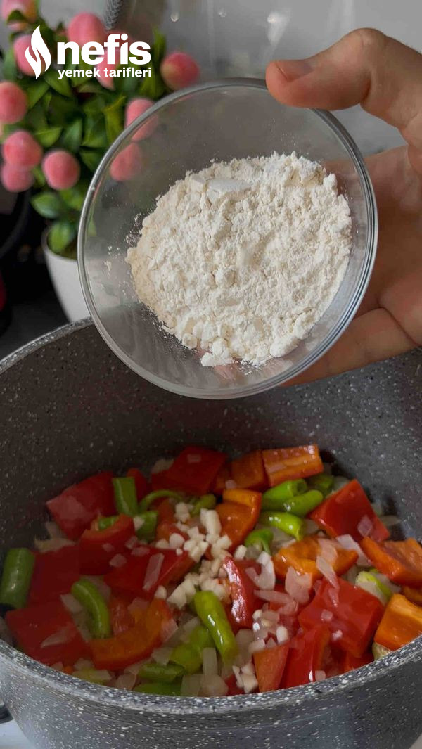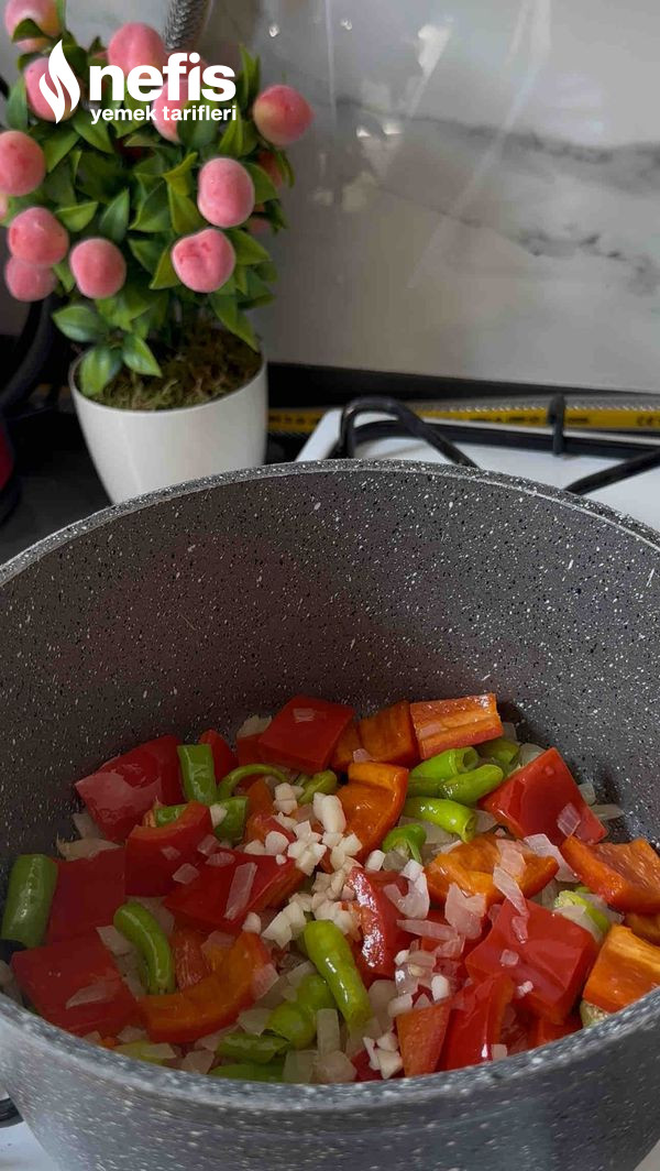 - Üzerine biberleri ekleyip az daha kavuralım.