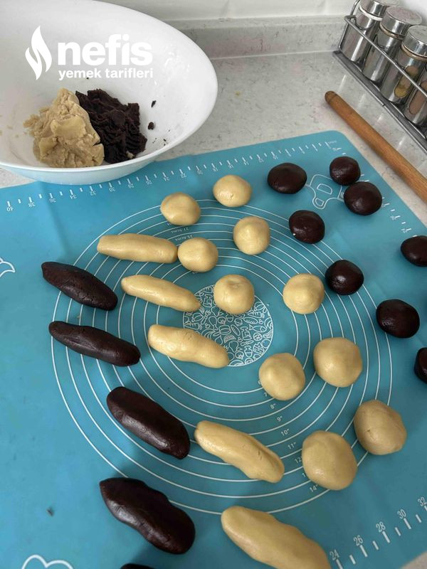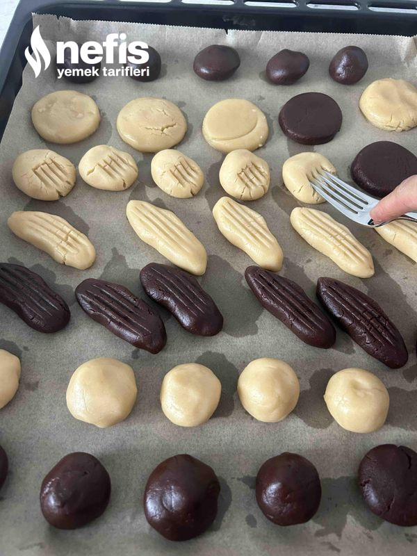 5. Ardından sade hamurdan da tıpkı halleri verip kurabiyeleri hafif aralıklı dizelim.