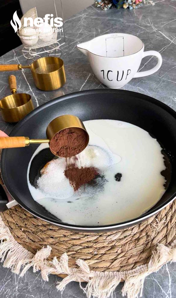 - Sos için süt, şeker ve kakaoyu uygunca çırpın.