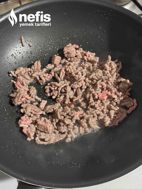 1. Kıymayı tencerede kavuralım.