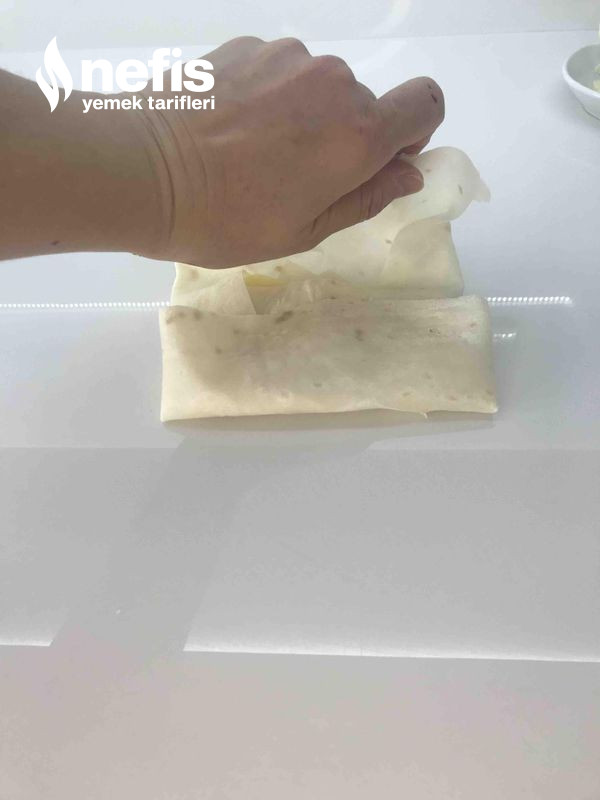 - Üzerlerine kalan iki parçayı koyup kenarlarından katlayıp kare yahut dikdörtgen halinde börekler elde edin.