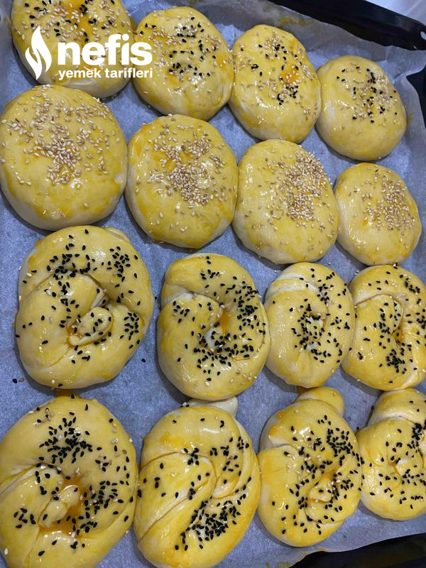 - Önce 50 derecede fırında 15 dakika bekletelim daha sonra yumurta sarısı üzerine sürelim çörek otu yahut susam üzerine dökelim evvelce ısıtılmış fırında 180 derecede yaklaşık 25 dakika pişirelim.