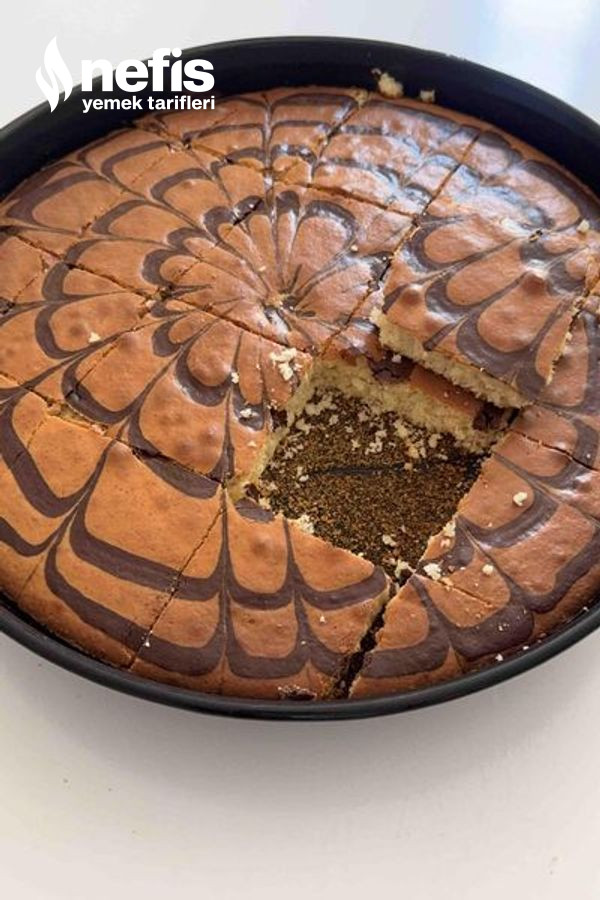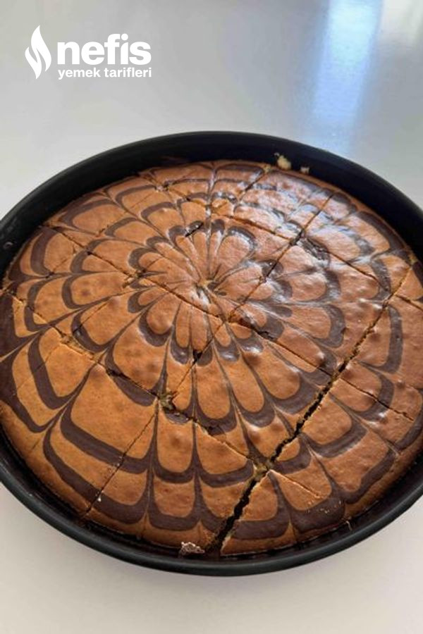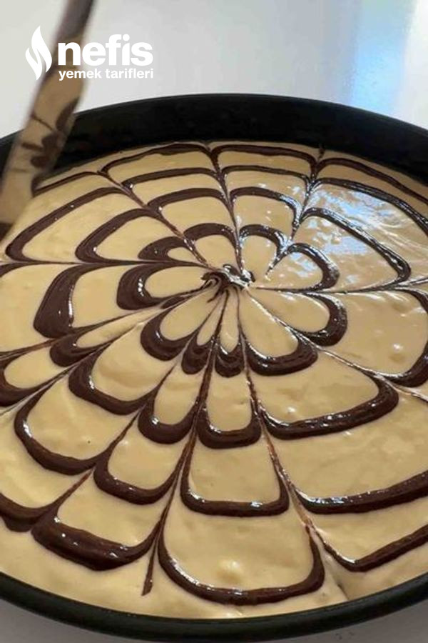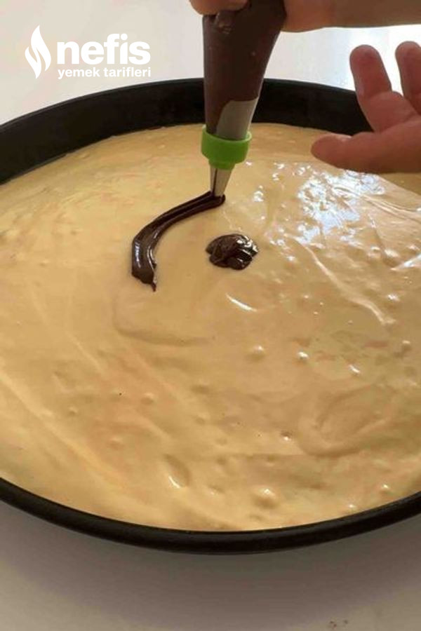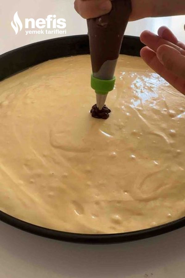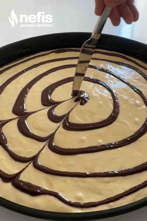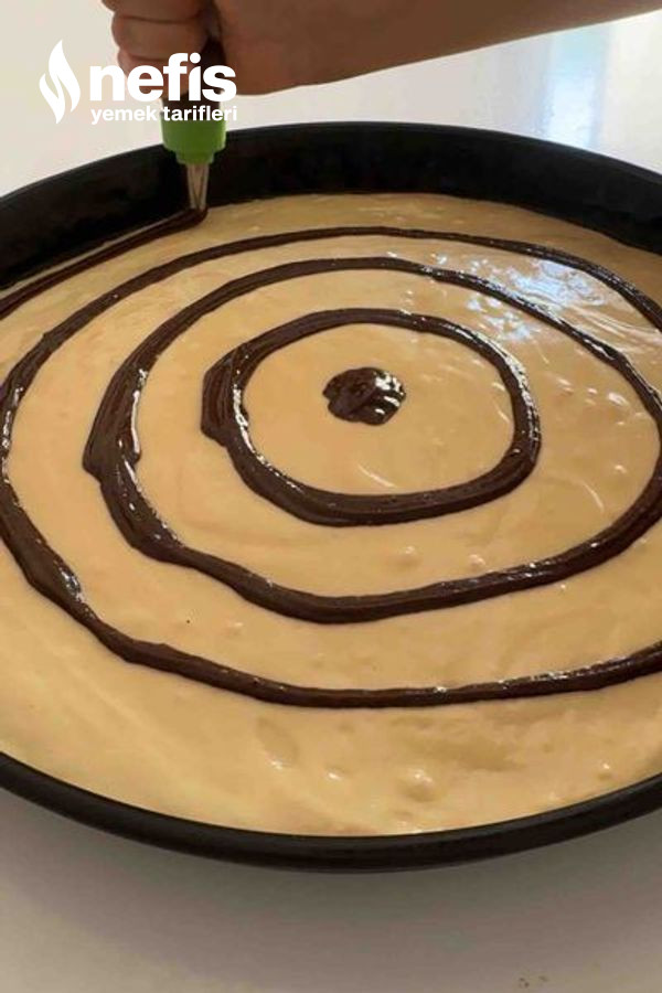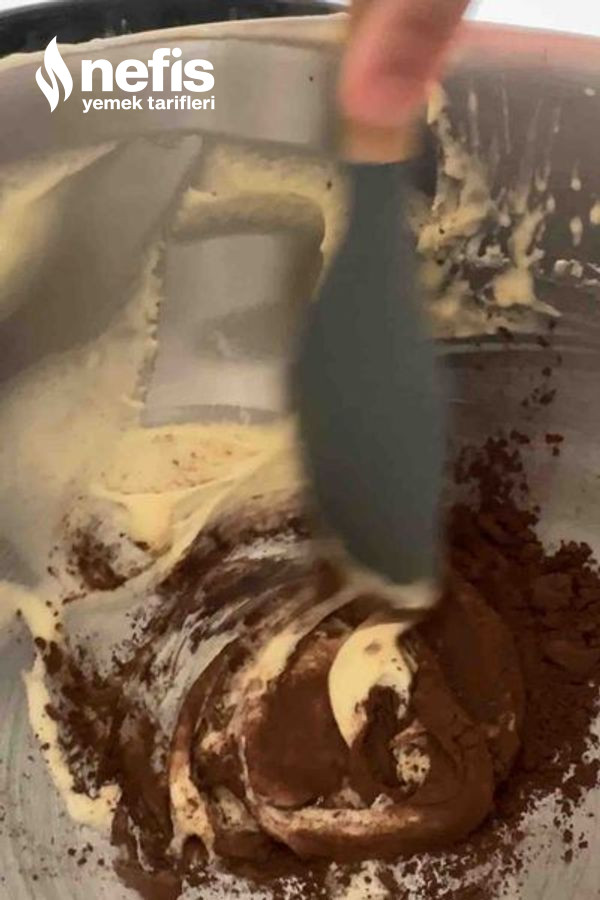 - Kalan harca kakao ekleyip karıştırın ve desen vererek tepsiye dökün.