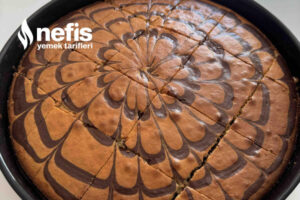 - Kalan harca kakao ekleyip karıştırın ve desen vererek tepsiye dökün.