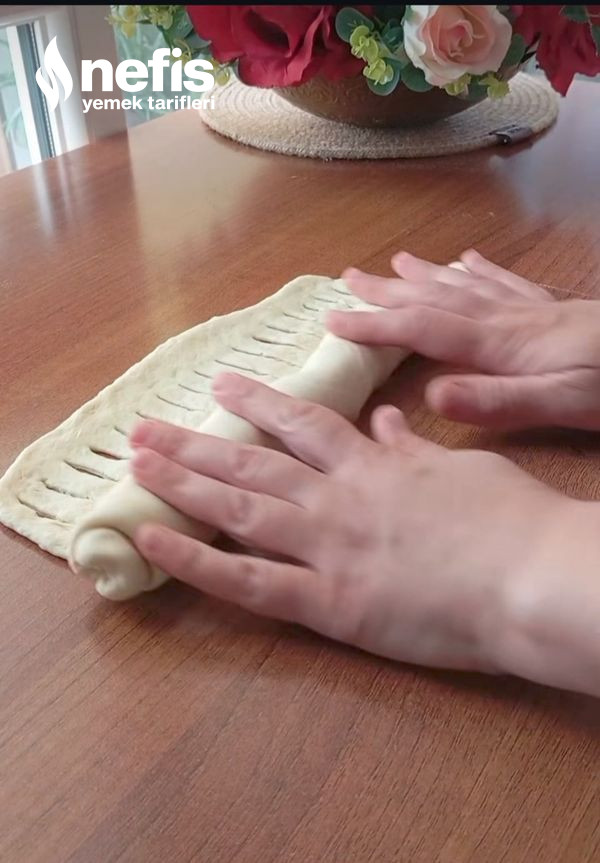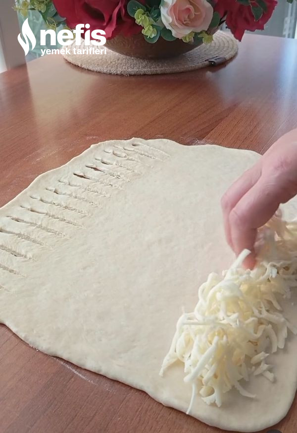 - Alt kısmına kaşar rendesini koyup yuvarlayıp rulo haline getiriyoruz.