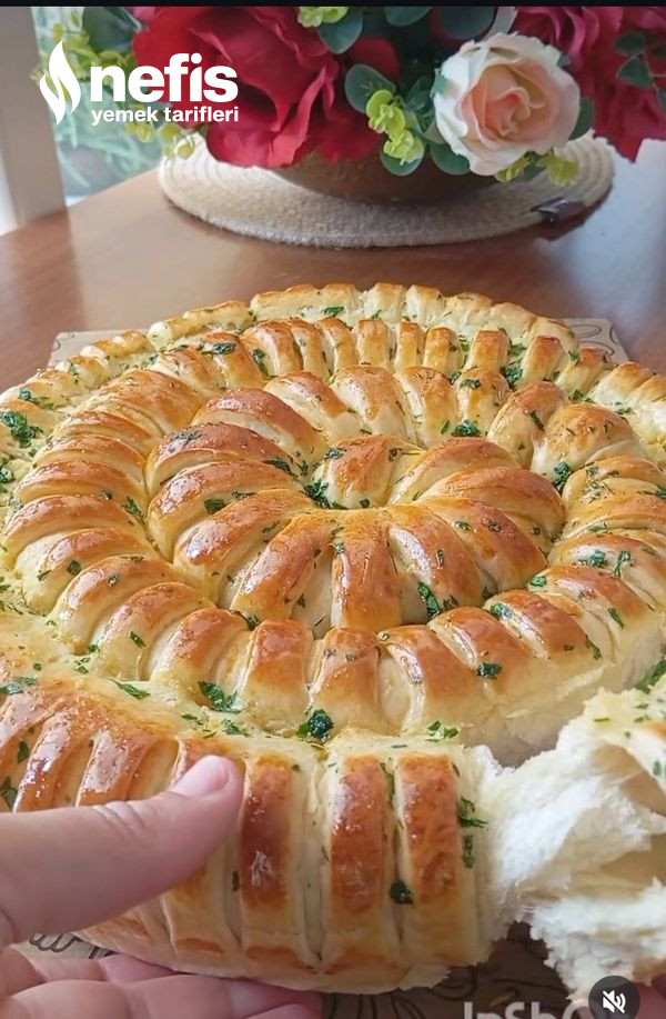- Fırından çıkınca eritilmiş tereğı ve ince kıyılmış maydanoz karışımı sürüyoruz. Afiyet olsun.
