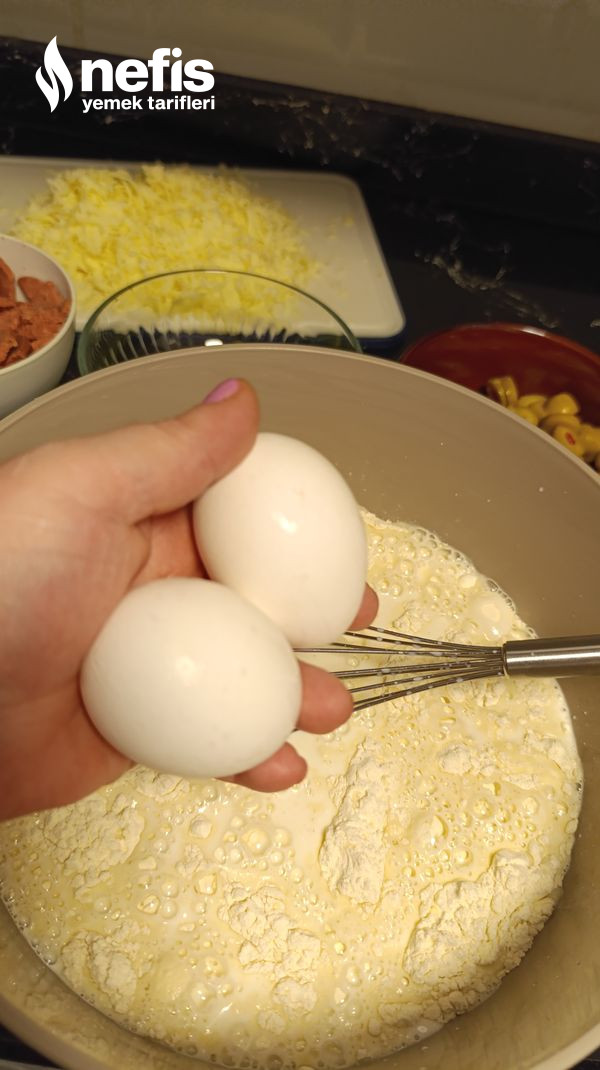 - Öncelik derin bir kaba unumuzu yumurtaları sütü suyu kabartma tozunu tuzu alarak krep hamurunu hazırlıyoruz.