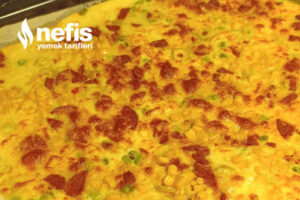 - Üzerine kaşar peyniri, sucuğu, yeşil biberleri, kaşar peyniri, zeytini, konserve mısırı serperek 220 derece fırında 20_25 dk pişiriyoruz. Afiyet olsun👌😋🤗