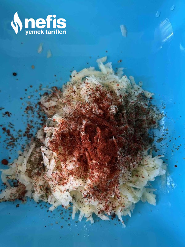 2. Üzerine baharatları ve tuzu ekleyelim, karıştıralım.