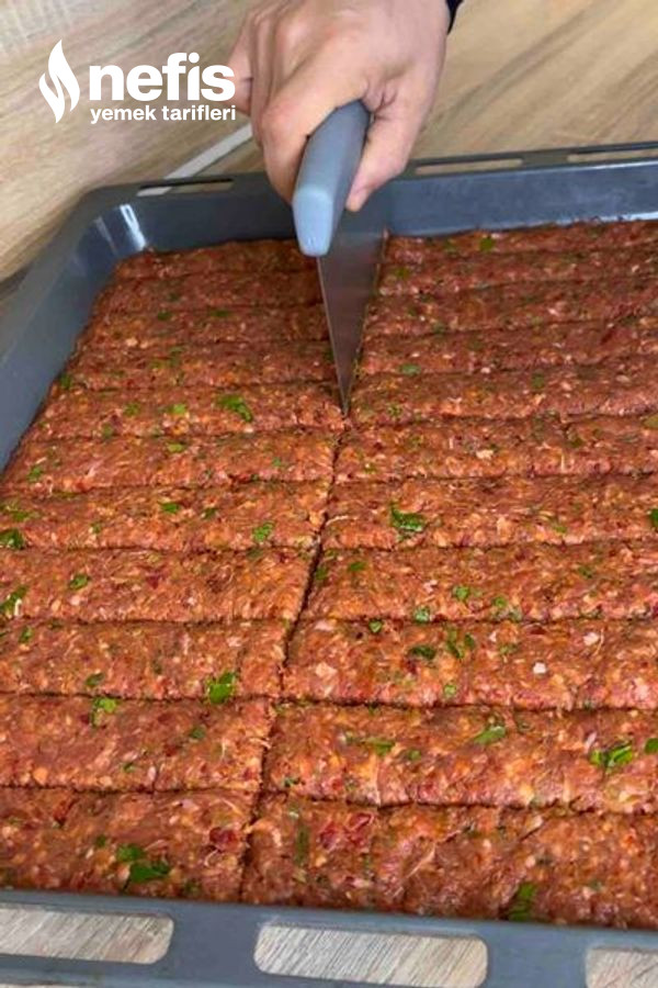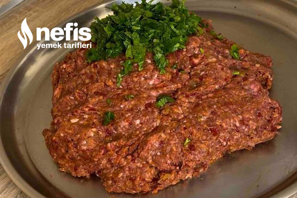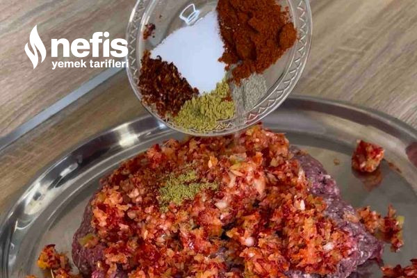 - Geniş bir tepsiye kıymayı alın üzerine rondodan geçirdiklerinizi biber ve soğanları baharatları ve kuyruk yağını ekleyin ( ben kuyruk yağını buzlu biçimde rendeledim sizlerde dilerseniz o denli yapın çok pratik oluyor) elinizle çiğ köfte yoğurur üzere uygunca yoğurun son olarak küçük doğradığınız maydanozu ek edip biraz daha yoğurun.