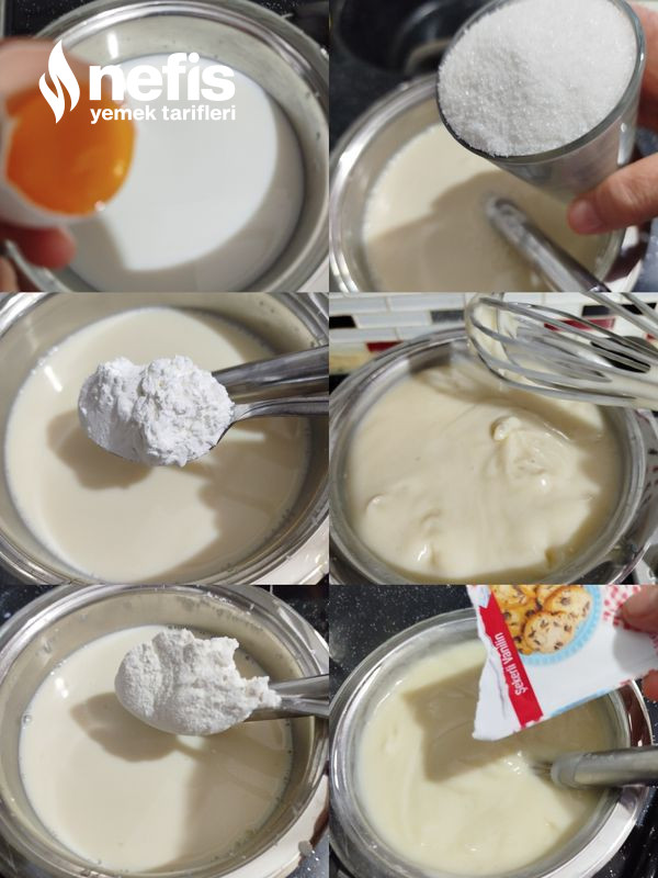 1. Vanilya ve labne hariç bütün malzemeyi karıştırıp ocağa alalım ,muhallebi üzere oluncaya kadar pişirelim.