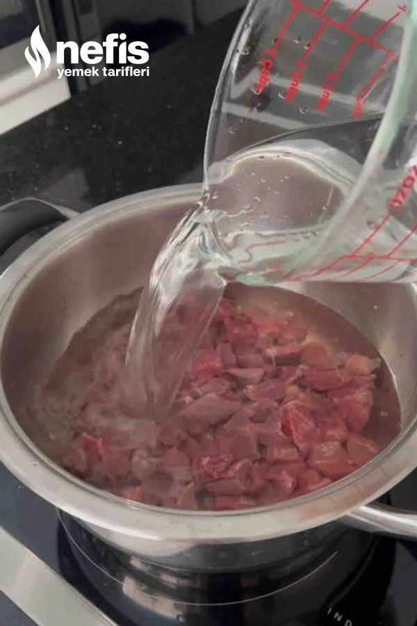 1. Eti tencereye alıp yaklaşık 1 l su ekleyin ve su berraklaşana kadar haşlayın.