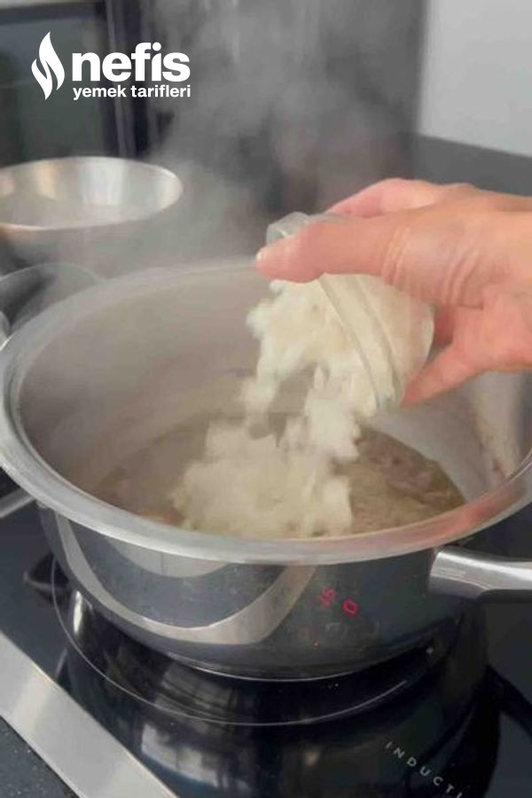 4. 1 l suyu daha ekleyin, sosu hazırlayın ve nane, tuz ile tatlandırın.